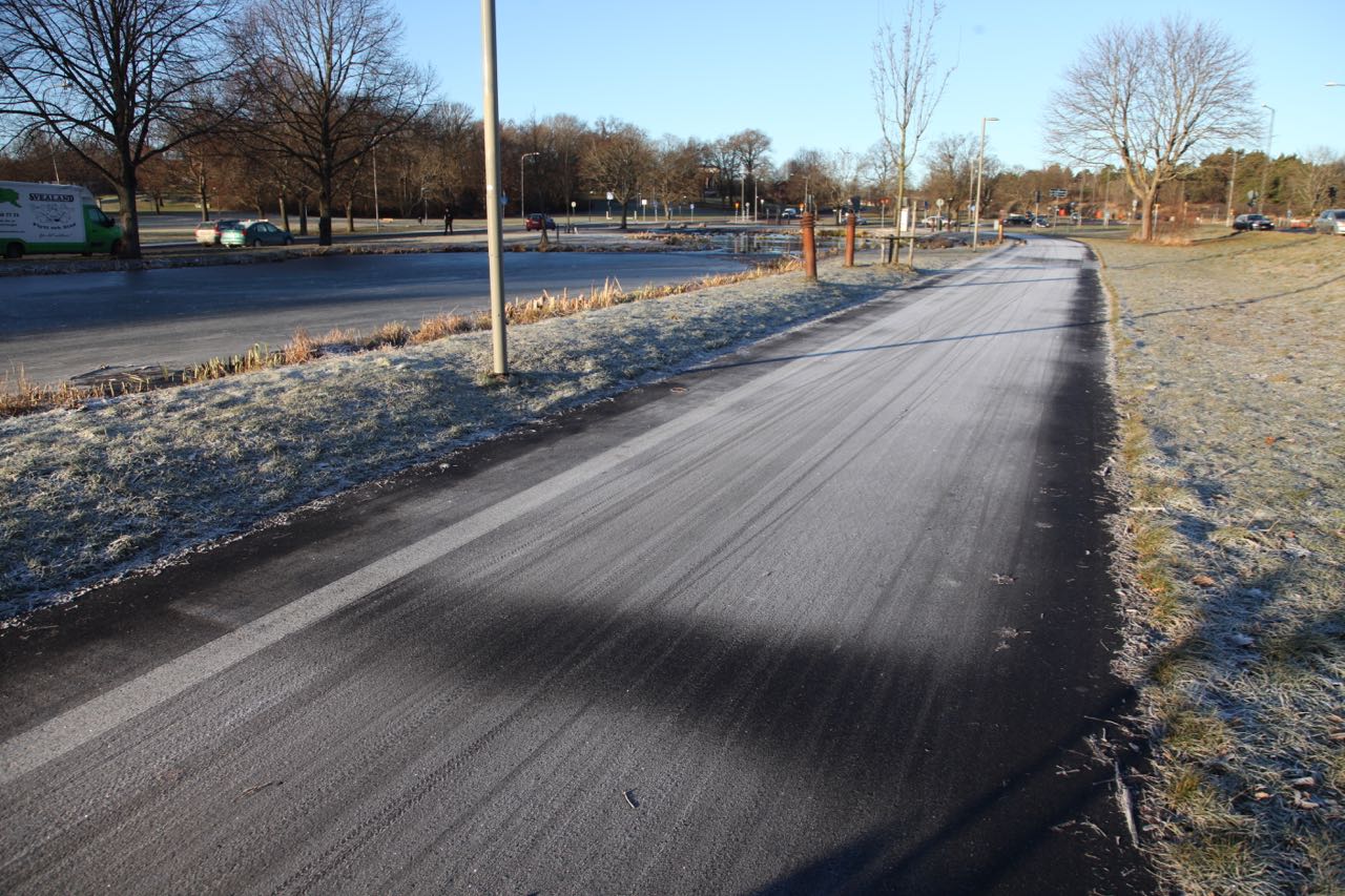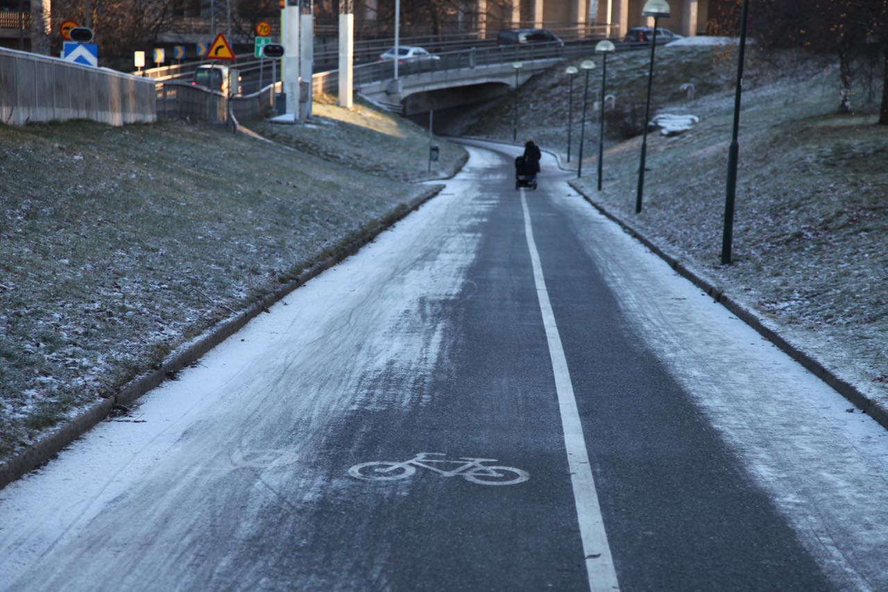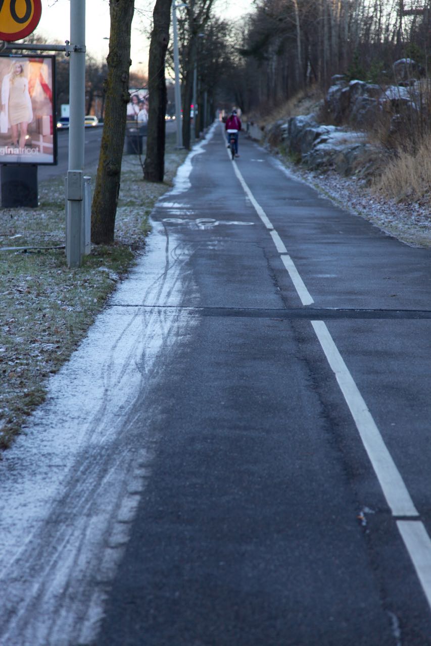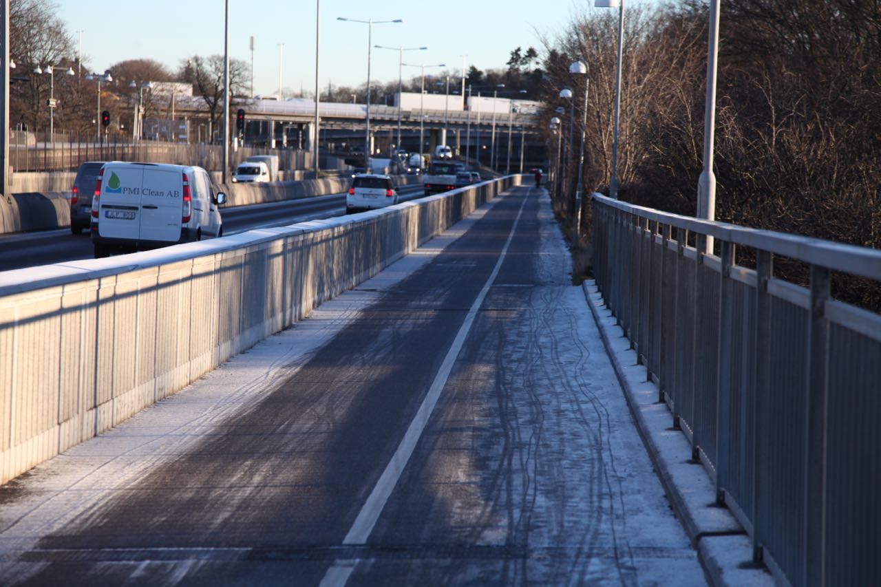 Lördag 12e december blir det köldgrader. Det har varit några enstaka dagar tidigare med minusgrader och ishalka på cykelstråket, men nu är det dags att göra en lite mer omfattande besiktning. Särskilt som tidigare erfarenheter visat att Trafikkontoret saknar egen organisation för relevant kvalitetskontroll av underhåll och halkbekämpning.