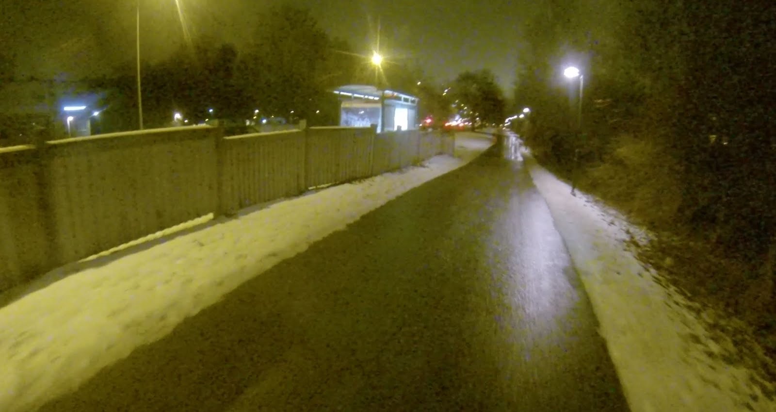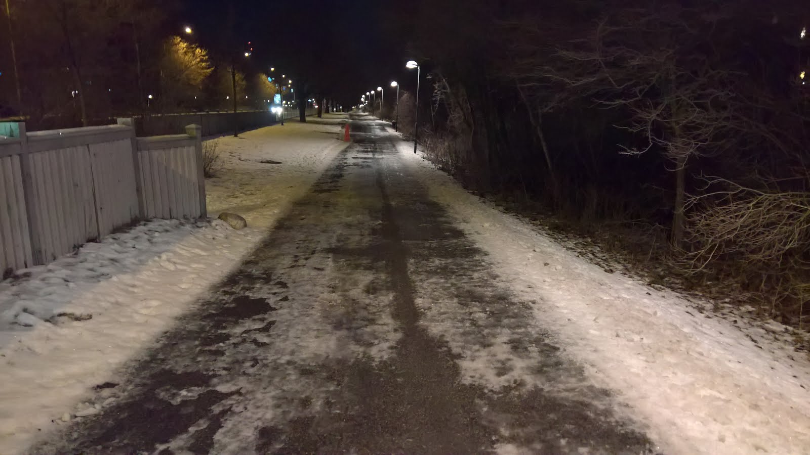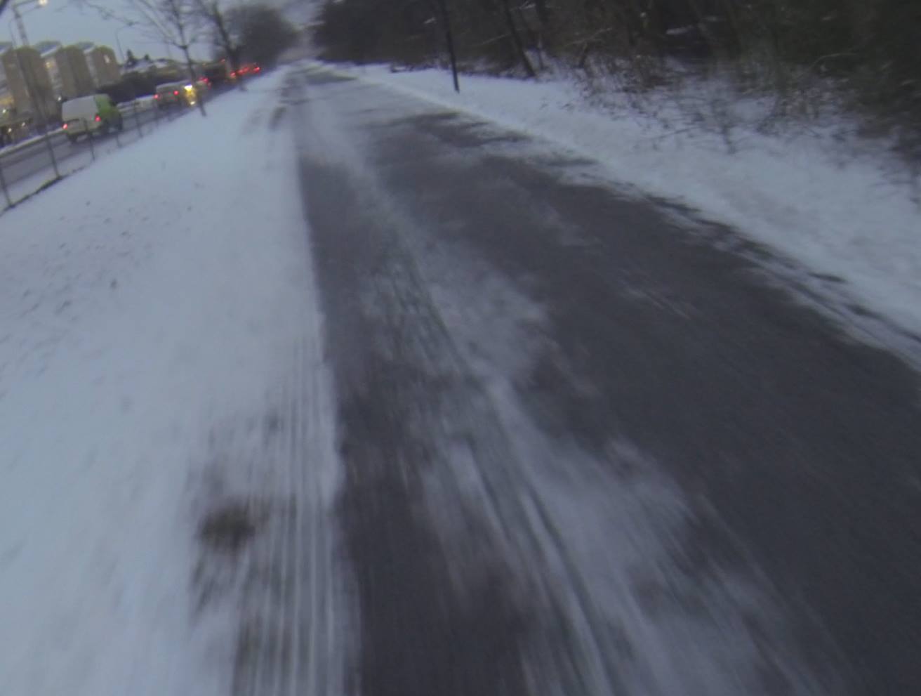 Update 2016-12-16: När jag passerade vid 17-tiden så var gång/cykelbanan äntligen asfaltsren. Synd att det tog fem dygn efter snöfall och flera felanmälningar innan stråket fixades.